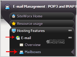 3. Click the E-mail menu item and then click on the Mailboxes option.