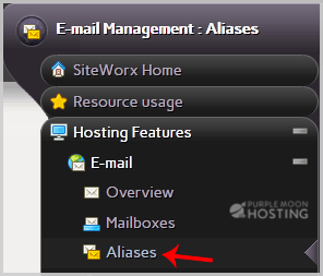 2. Under SiteWorx Menu, click the Hosting Features menu item if it is not already open.