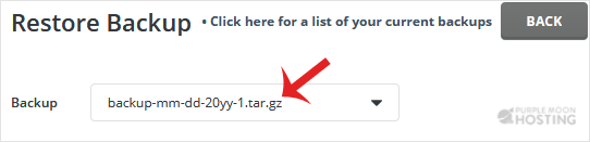 4. Under Restore Backup, click on the Drop-Down menu and select the backup you wish to restore.