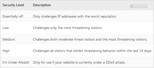 Cloudflare has categorized the security level in five methods. In the below screenshot, you can see it in detail.