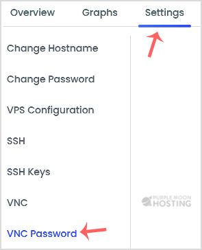 4. Click on the Settings tab, and under the settings tab, click on VNC Password.